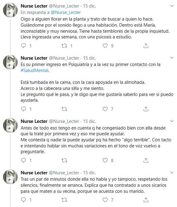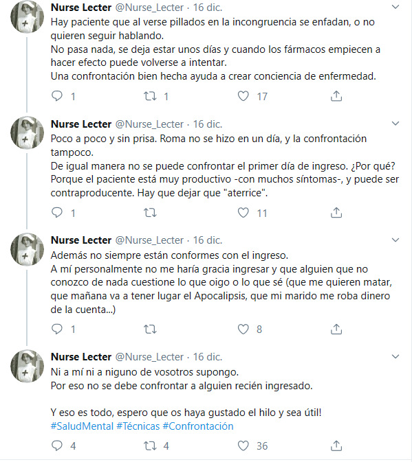 Reproduzco este hilo en Twitter de @Nurse_Lecter, con su autorización, sobre la técnica de confrontación. Me ha encantado la profesionalidad, claridad y humanidad con el que la autora narra el caso.